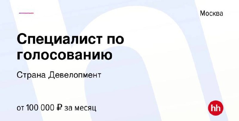 🤔Страна девелопмент открыла вакансию «Специалист по голосованию» на Хедхантере