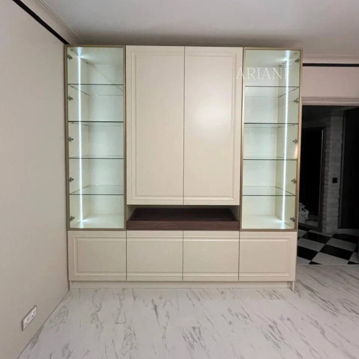 Представляем предмет, который одновременно демонстрирует и хранит: центральная секция с двумя широкими дверцами и открытой деревянной нишей создаёт выразительный акцент и удобную зону для декора или ежедневных вещей. • По бокам — стеклянные витрины с подсветкой и полками для демонстрации любимых предметов. • Внизу — вместительные полки для аккуратного хранения. • Светлая палитра и изящные детали делают интерьер визуально лёгким и утончённым. ⭐️Такой шкаф форматирует пространство и подчёркивает продуманный вкус заказчика. ➖➖➖➖➖➖➖ Обратитесь к нам уже сегодня, и мы поможем воплотить вашу мечту в реальность 📱+74993224342 ✈️написать в чат менеджеру ➖➖➖➖➖➖➖ 📲 Наш канал в MAX #гостиная #шкаф #стенка