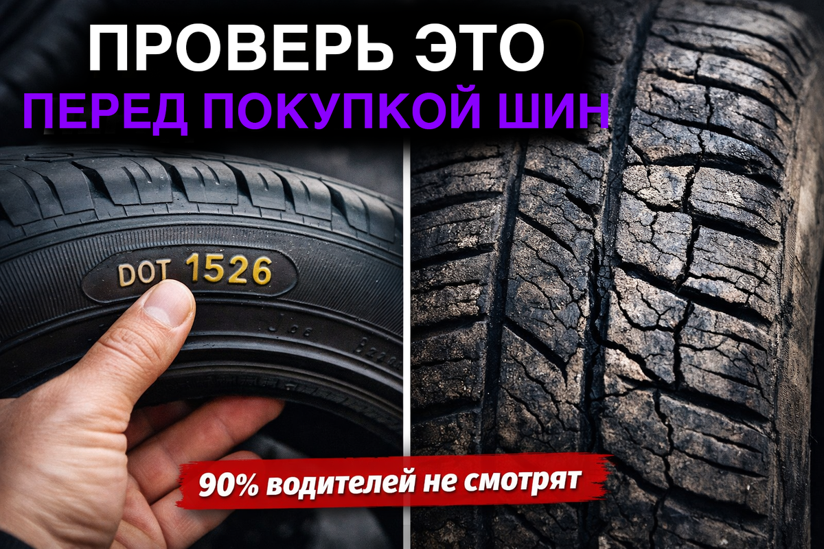 Каждый год водители покупают новые шины. И большинство делает одну и ту же ошибку. Они смотрят на бренд. Смотрят на цену. Но не проверяют самую важную вещь. Из-за этого даже дорогая резина может оказаться хуже старой. Ниже — 7 вещей, которые нужно проверить перед покупкой шин в 2026 году. Сохраните этот список — он может реально сэкономить деньги. На боковине любой шины есть DOT-код. Это четыре цифры, например: 1524 Это означает: 15 неделя 2024 года. Проблема в том, что в магазинах часто продают шины, которым 4–6 лет. С виду они новые. Но резина уже начинает терять эластичность. И сцепление становится хуже. Оптимальный возраст шины при покупке: ✔ до 3 лет Если больше 5 лет — лучше поискать другой комплект. На шине есть маркировка вроде: 225/45 R17 94W Цифра 94 — это индекс нагрузки. Если поставить шины с меньшим индексом: Всегда проверяйте, чтобы индекс был не ниже заводского. Буква в конце маркировки — это максимальная скорость. Например: H — 210 км/ч V — 240 км/ч W — 270 км/ч Если п