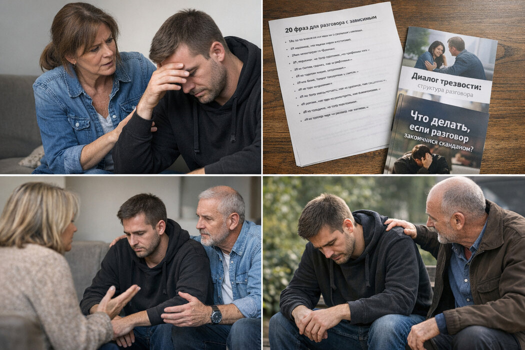 «Диалог трезвости» — это специальная структура разговора с зависимым человеком, которая помогает обсуждать лечение без конфликта и давления.