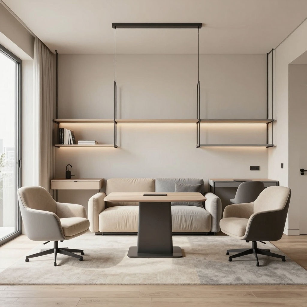 Минималистичная мебель для малых квартир должна не только экономить пространство, но и заботиться о здоровье. Высота рабочего стола, глубина сиденья, жёсткость матраса — всё это имеет значение. И здесь на помощь приходит трансформируемая мебель, которая позволяет адаптировать пространство под разные ситуации: утром — место для завтрака, днём — рабочая зона, вечером — уютный диван для отдыха, ночью — полноценная спальня.