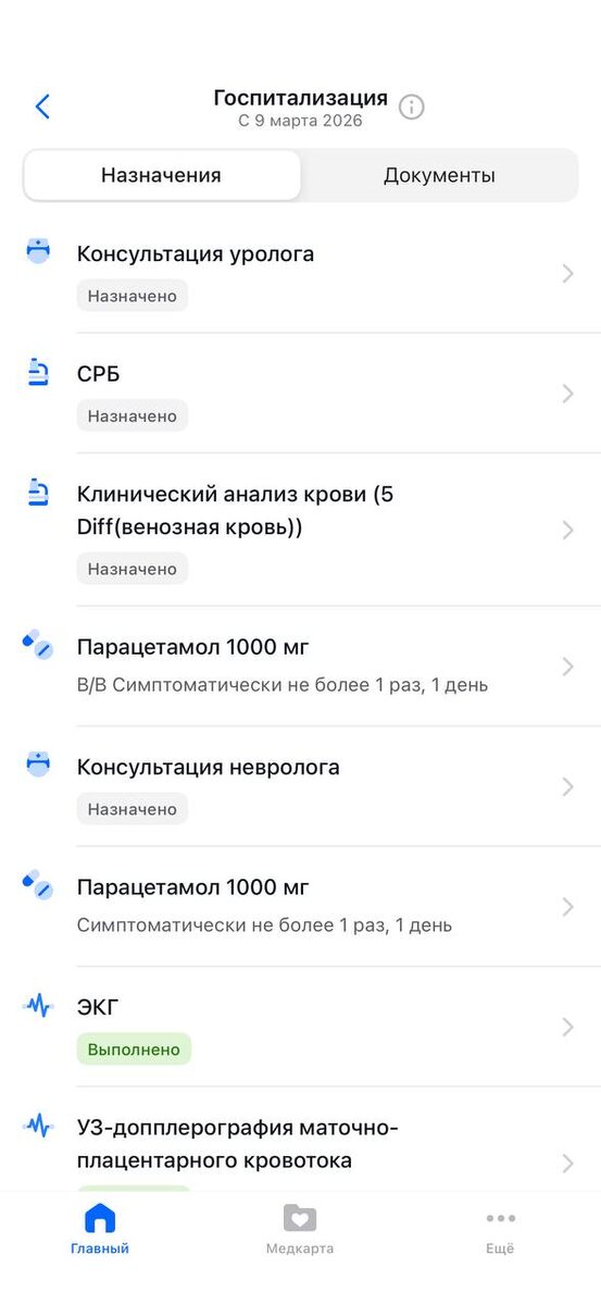 … Говорят, что всё же у меня невролгия… Но в назначениях появилось «консультация уролога»… Жду врачей… Боли не прошли… Когда домой отпустят не понятно…
