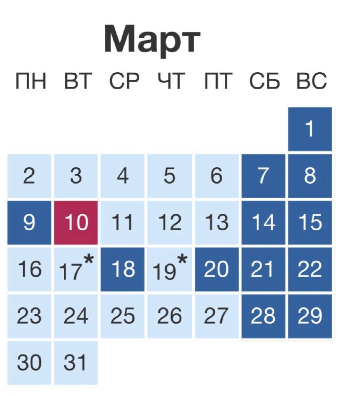 🌞 Напомним, что на следующей неделе у жителей Крыма будет всего три рабочих дня. 🔴18 марта - День воссоединения Крыма с Россией (региональный нерабочий день); 🔴20 марта - Ураза-байрам (региональный нерабочий день). 17 и 19 марта сокращенные рабочие дни на один час. 🔊Крымский новостной / Предложить новость