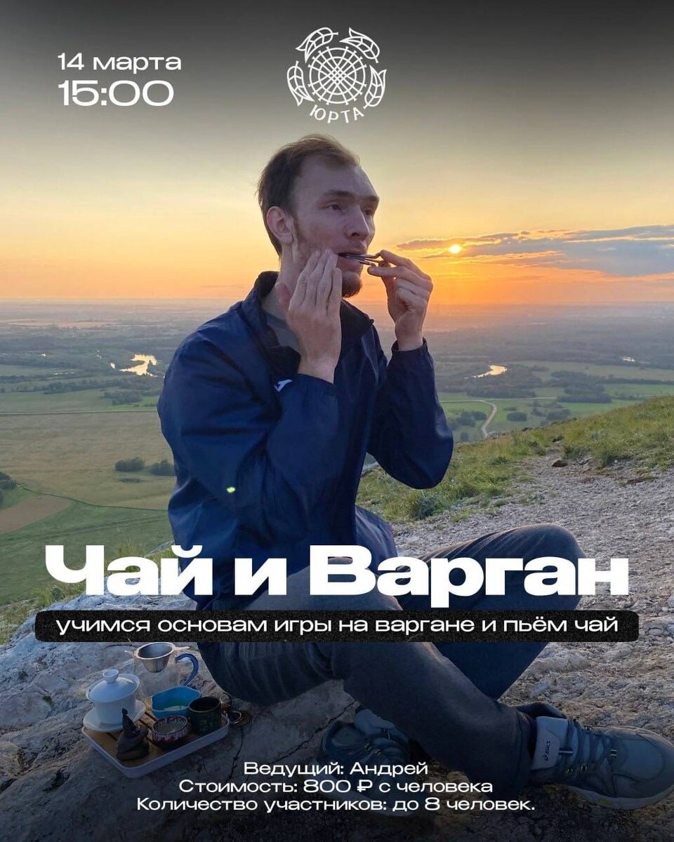 Знакомство с варганом и чайной церемонией. Послушаем сольное исполнение на трёх варганах, освоим азы игры и поиграем вместе на инструментах. Начало: 14 марта 2026 15:00 Стоимость: 800.0 руб. Адрес: г Омск, пр-кт Карла Маркса, д 67А Организатор: https://vk.com/public139712034 Учимся основам игры на варгане и пьём чай Суббота в 15:00 | 14 марта Программа мероприятия: • начнём со знакомства друг с другом и с Тайваньским улуном Сы Цзи Чунь («Четыре сезона Весны») • послушаем три варгана в сольном исполнени Андрея • перед тем, как начнём совместно играть - попьём Фуцзяньский улун Шуйсянь («владыка вод») • освоим азы игры на варгане • поиграем вместе на инструментах. Откроет нашу встречу слабоферментированный улун - Сы Цзи Чунь. Настроит нас на волну,... #гастрономия_чайная_церемония Узнать подробности, адрес или записаться на событие.