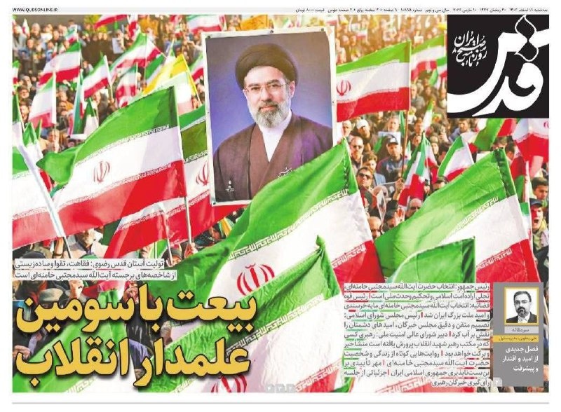 «Присяга третьему мудрецу революции»; «Хаменеи помолодел»; «Реинкарнация души»; «Лидер всего ирана»; «Новое дыхание революции - вызов для присяги всего ирана»; «Присяга нашей души».