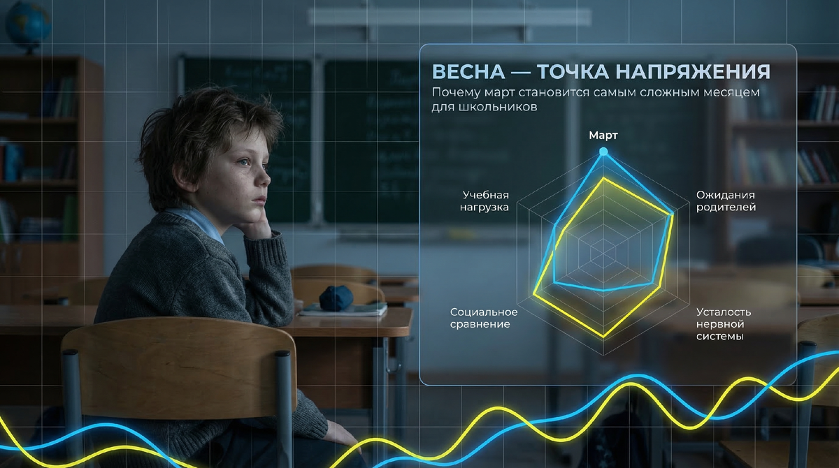 Ребёнок к этому моменту уже прожил шесть месяцев учебной нагрузки. Для взрослого это звучит не драматично. Для детского мозга это огромный период.