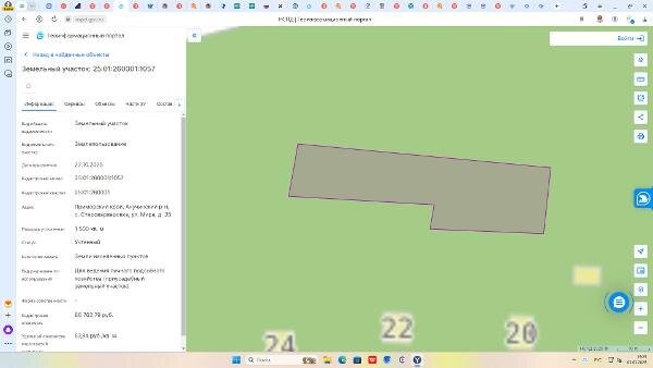 Ориентир — жилое здание.. Участок находится примерно в 83 м., от ориентира по направлению на северо-восток. Почтовый адрес ориентира: Приморский край, Анучинский район, с. Староварваровка, ул. Мира, д.35. Канал: Госземля Приморский край Область: - Район: - Населенный пункт: - Локация: Смотреть на карте ВРИ: Для ведения личного подсобного хозяйства (приусадебный земельный участок) Кадастровый номер: 25:01:260001:1057 Кадастровая стоимость: - Вид сделки: Аренда Площадь: 1500 м² Начальная цена: 1301.00 руб. Дата завершения: 09.04.2026 Подробнее: ГИС ТОРГИ #госземля #земляотгосударства #земля #земельныйучасток #земельныеторги #торги #аукцион #арендаземли #аренда #приморскийкрай