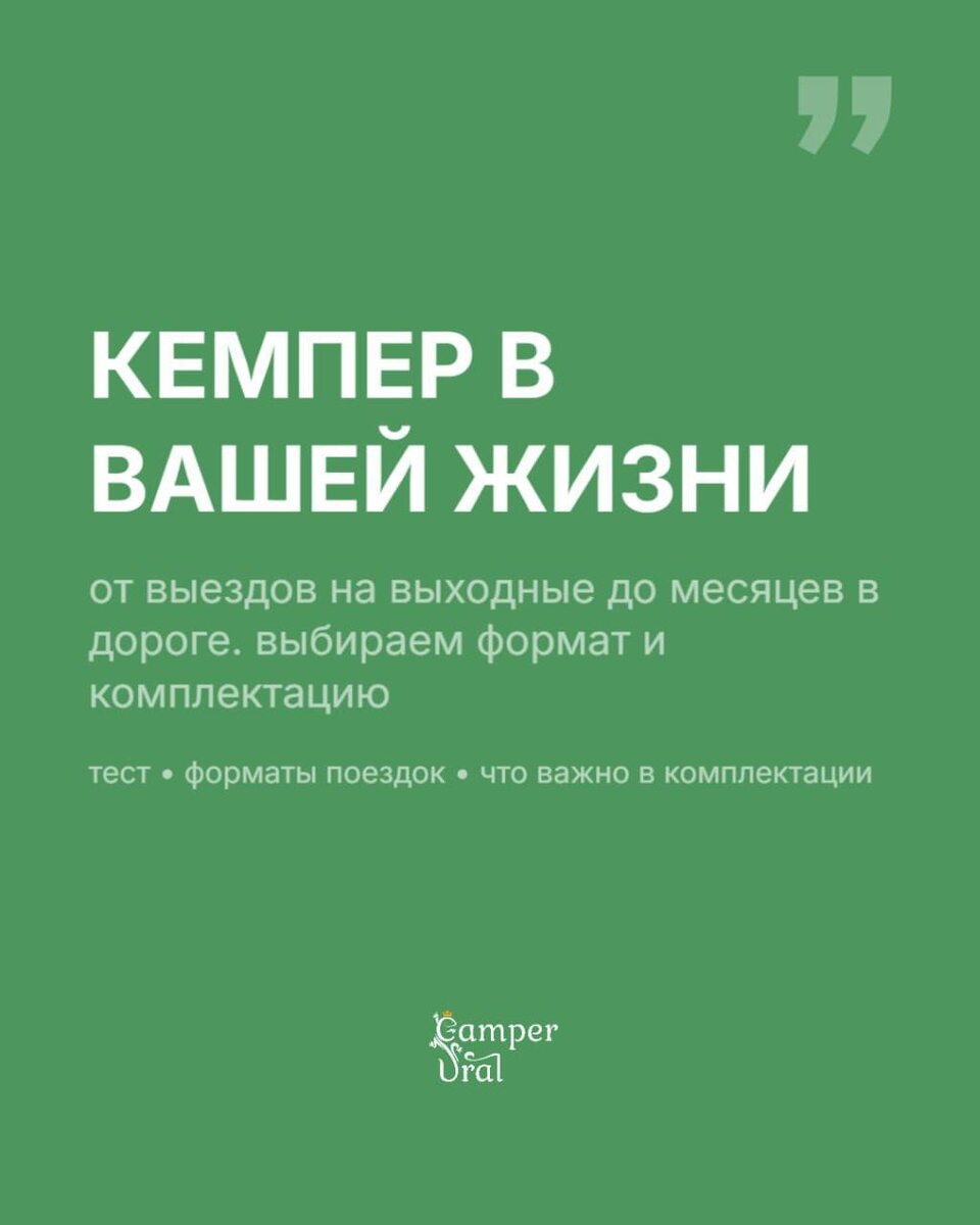? Главный вопрос, который стоит задать перед покупкой кемпера: как часто я буду им пользоваться и впишется ли он в мой привычный ритм жизни? Важно понимать, что прицеп – это помощник, который качественно меняет уровень отдыха. Чтобы он приносил максимальную пользу, мы рекомендуем отталкиваться от реальных целей. Сначала определить формат будущих поездок, а уже под него подбирать планировку и необходимые опции прицепа Советуем действовать пошагово: 1. Формат. Определите, как и где вы планируете проводить большую часть времени в поездках (разборы есть в карточках) 2. Планировка. Решите, сколько человек будет ездить и как лучше организовать пространство внутри модуля 3. Опции. Дополните кемпер тем, что нужно именно вам (автономное тепло, запас воды или солнечная батарея) Почему это удобно? Для краткосрочных выездов на природу достаточно спального места и кухонного блока. Но если вы планируете длительные путешествия, то на первый план выходят независимость от внешних сетей и наличие са