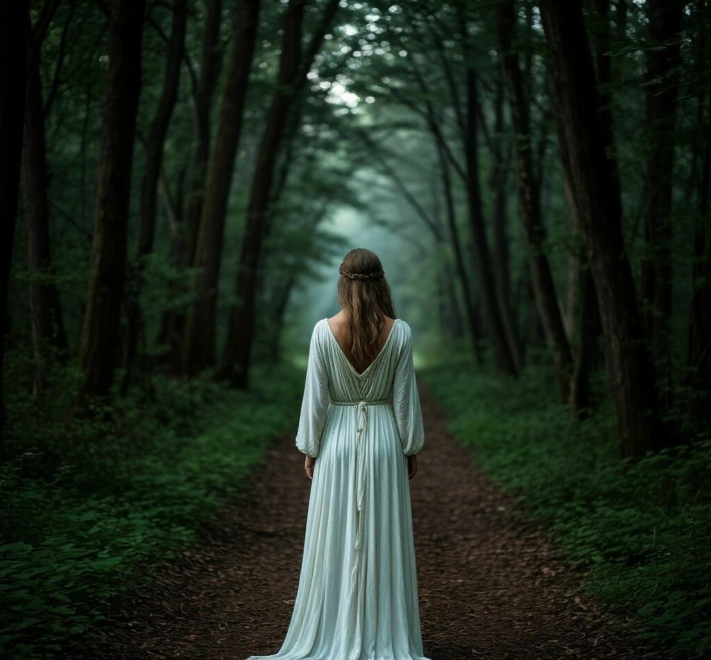Андрей вздрогнул и резко обернулся. Прямо перед ним, в двух шагах, стояла сгорбленная фигура в белом. Приглядевшись, он разглядел старуху в длинной светлой рубахе, подпоясанной верёвкой, и в тёмном платке, низко надвинутом на лоб. Лица её в темноте было почти не видно, только блестели глаза.