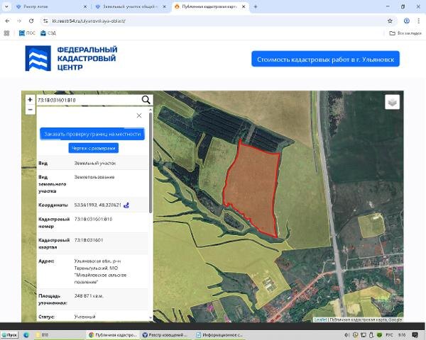 Название: Земельный участок с кадастровым номером 73:18:031601:810 площадь 248871 по адресу Ульяновская обл., р-н Тереньгульский, МО