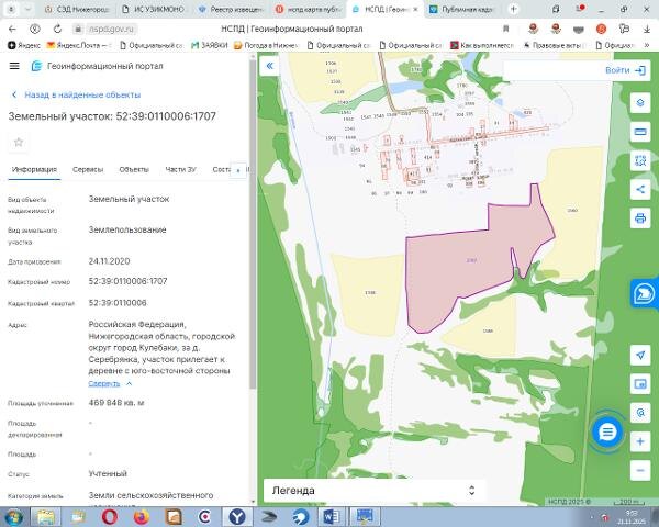 Название: Земельный участок с кадастровым номером 52:39:0110006:1707 площадью 469848, расположенный по адресу: Российская Федерация