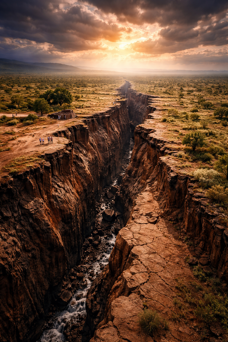 В Восточной Африке есть место, где земля буквально расползается на глазах. Огромная трещина длиной тысячи километров постепенно разрывает континент на две части. Иногда она появляется внезапно — прямо посреди дорог, полей и деревень. Земля раздвигается, образуя разлом шириной в несколько метров, словно гигантская линия, проведённая по карте. Учёные уверены: это не просто локальная трещина. Перед нами процесс, который может создать новый океан. Континентальная трещина длиной более 6000 километров Это явление называют Восточно-Африканской рифтовой системой. Она проходит через целый ряд стран: — Эфиопию