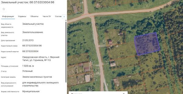 Название: Земельный участок с кадастровым номером 66:37:0203004:96, общей площадью 1928,00 кв.м., категория земель – земли населенных