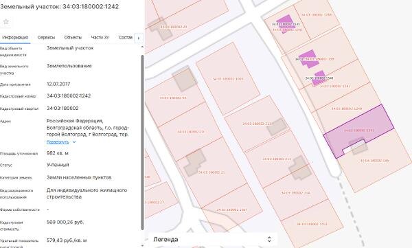 Название: Земельный участок с кадастровым номером 34:03:180002:1242, площадью 982 кв.м, с местоположением: Российская Федерация