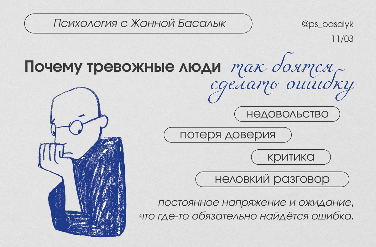 Но внутри обычно другое состояние — постоянное напряжение и ожидание, что где-то обязательно найдётся ошибка. Многие люди живут с этим годами, они долго проверяют документы, перечитывают сообщения перед отправкой, боятся отвечать на письма, потому что можно сказать что-то не так. Даже обычный вопрос вроде «Ты уверен, что всё правильно?» может резко повысить тревогу. Для тревожного человека ошибка — не просто неточность. Внутри она часто связана с более серьёзными ожиданиями: критика, недовольство, неловкий разговор, потеря доверия. Поэтому мозг начинает относиться к любой возможной ошибке как к потенциальной опасности. Даже маленькая неточность воспринимается не как рабочая ситуация, а как рис
