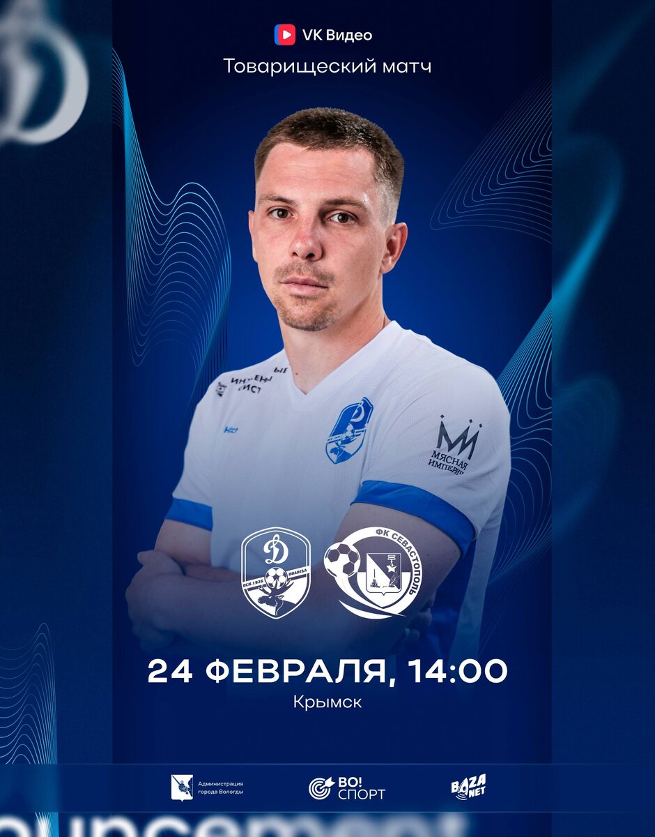 Соперник — «Севастополь». Динамо ТВ покажет матч в прямом эфире на 📺 VK Видео, а самые опасные моменты встречи и тестовая трансляция, будут доступны в нашем телеграм-канале 💙 @dynamovologda