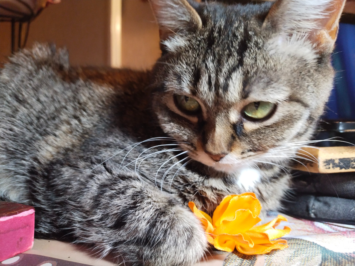 Два слова о планах на ближайшие дни. В чудовищную пятницу, 13-го у меня великая и ужасная съёмка. А ещё эта неделя короткая - праздновали же! Поэтому я буду готовиться к работе по трудовой книжке. Тут не смогу писать. Вы меня не теряйте, я пока живая! Вот вам пока Чуфу с цветочком для полюбоваться. 😍 Ну и чтобы два раза не вставать! 😁 Вчера, как вы знаете, мы чествовали Клуб самарских рукодельниц в виде самих себя. Мероприятие прошло в Доме культуры "Заря". Где я обнаружила выставку работ, вышитых лентами. Ира как увидала меня в холле, так сразу к стенке и поставила. И не просто из-за темы "Ленты". А ещё вот по этой причине: А вот и сама Татьяна Викторовна - это фото с нашей самой первой встречи аж в 2018 году! Только что на мастер-классе сделали брошь, глаза искрятся от восторга: ленты - это чудо! И вот началось с простенькой брошечки - а сейчас смотрите, какой уровень мастерства! Картины висят высоко, не ругайте меня сильно за "талантливые" фотографии. 😁 Смотрите, какая нежност