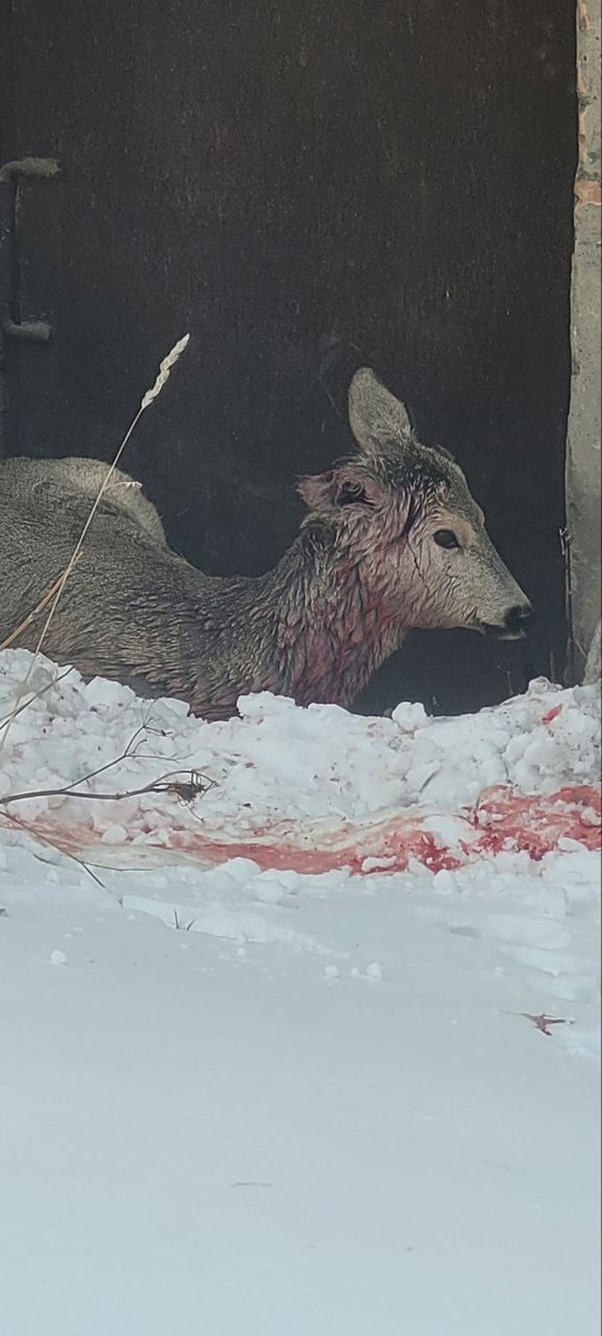 ЧП произошло сегодня в Южной промзоне, квартал 1, строение 10. Как нам рассказали очевидцы, парни отогнали собак от животного, оно ранено. «Ачинск, Южная промзона, кв-л 1, стр. 10. Лежит с 13:00 часов, подробная собаками. Мы собак отогнали, стоим охраняем», — позвонила нам и рассказала о случившемся обеспокоенная девушка. Люди звонили в полицию, там им сообщили, что заявление есть. Информацию передали в администрацию округа, где должны решить, что делать с раненой косулей. В службе «112» на звонок сообщили, что такие заявления не принимают, и сказали звонить в полицию. Люди боятся, что, когда они уедут, несчастное животное доедят собаки, и уже не знают, куда звонить и к кому обращаться. Сегодня косуля попала под колеса автомобиля на улице Свердлова в Ачинске. Фото очевидцев