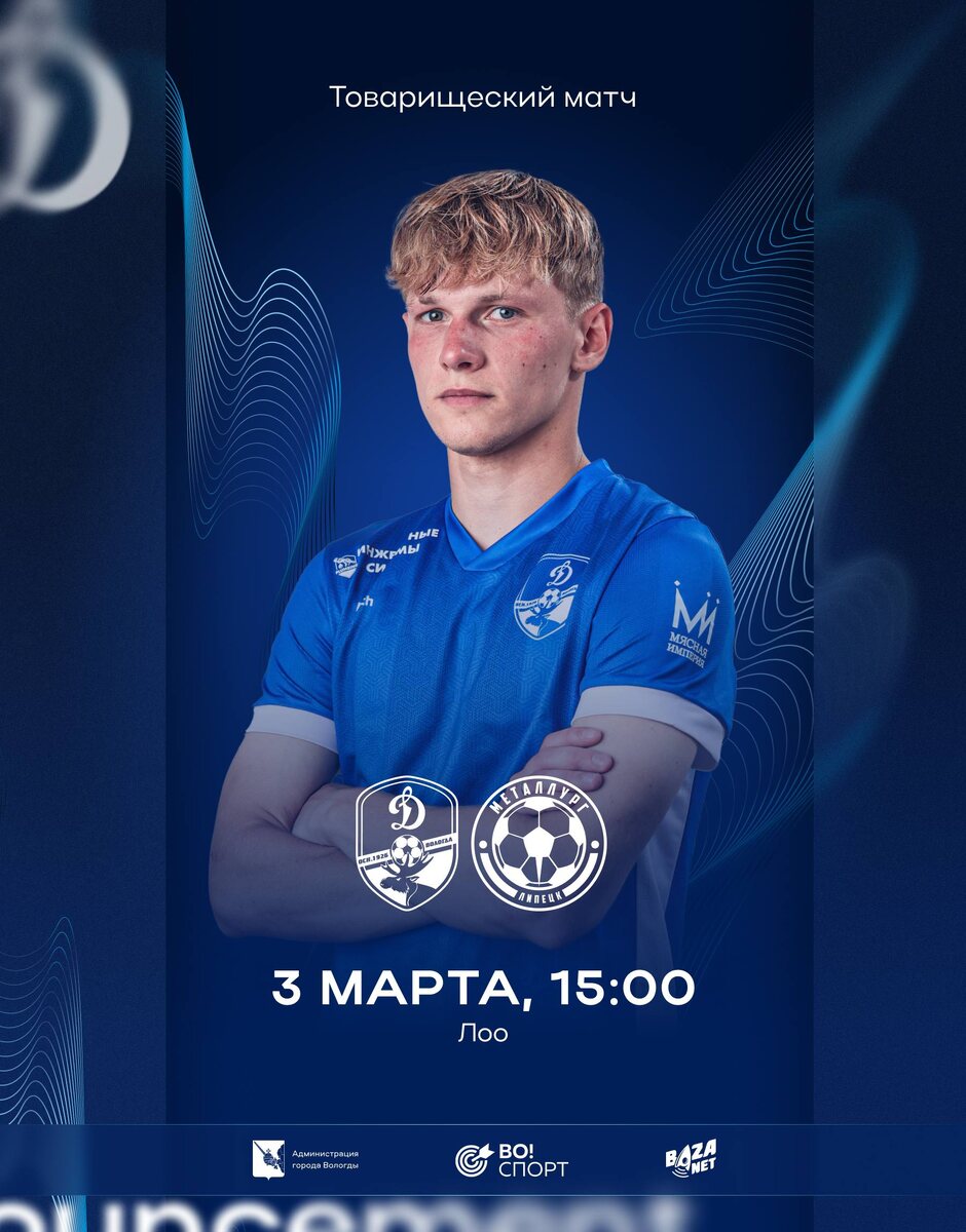 Соперник — ФК «Металлург» (Липецк). Футбольный клуб «Динамо» (Вологда) выражает благодарность липецкому клубу за организацию трансляции игры. Ссылка на прямой эфир появится в день матча 💙 @dynamovologda