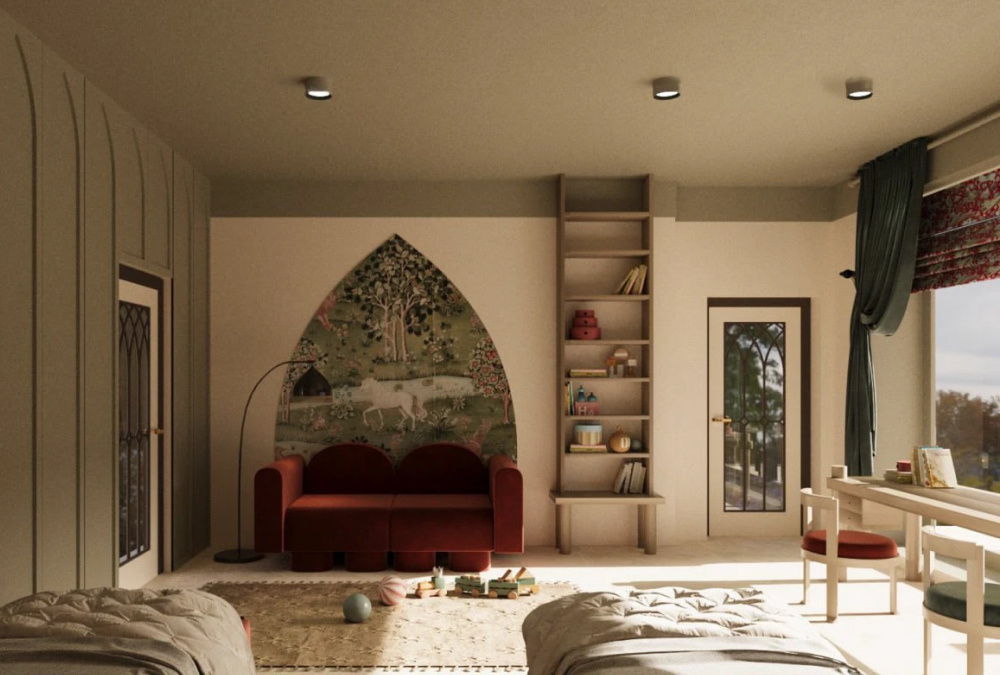 Недавно мы получили трогательное сообщение и решили поделиться им с вами с разрешения автора. «Здравствуйте! Меня зовут Елизавета, я учусь в СПбГУПТД на направлении «Дизайн интерьера» и хотела бы рассказать о своем курсовом проекте, — так начиналось её сообщение. — В работе над ним меня вдохновила ваша коллекция «Мастер».» Проект — двухэтажная квартира для многодетной семьи в Сестрорецке. В качестве источников вдохновения Елизавета называет искусство эпохи модерна и движение Arts and Crafts (искусство и ремесла). «Сторонники этого направления идеализировали средневековье, использовали простые, лаконичные материалы и анималистический орнамент; именно поэтому я обратилась к вашей коллекции «Мастер», — поясняет она. Нам очень приятно быть источником вдохновения для молодых дизайнеров. Особенно радует, что такие проекты продуманы — в них есть ясная идея и логика, а не только красивая картинка. Автор проекта: Елизавета Коробко Двери Фрамир: Мастер Шехтель, эмаль, белоснежный, черный агат