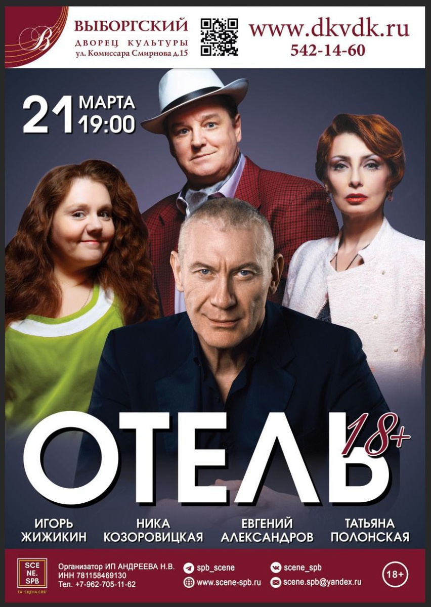 😍⬇️ 🌟"Отель 18+" с Игорем Жижикиным 🗓 21 марта в 19:15 🏩Дворец Культуры Выборгский 🎫Купить билеты scene-spb.ru/hotel18 🌟"Сирена и Виктория" 🗓23 марта в 19:00 🏩Дворец искусств Ленинградской Области 🎫Купить билеты scene-spb.ru/sirena 🌟"Двое в лифте, не считая текилы" 🗓 29 марта в 19:15 🏩Дворец Культуры Выборгский 🎫Купить билеты scene-spb.ru/dvoe_v_lifte 🎁По промокоду СЦЕНА20 для Вас скидка 20% *промокод действует только на официальном сайте компании