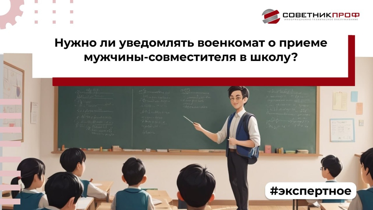 ВОПРОС: Нужно ли уведомлять военкомат о приеме мужчины-совместителя в школу? ОТВЕТ: Да, школа обязана уведомить военный комиссариат о приеме работника, в том числе принятого по внешнему совместительству. Представление сведений только по основному месту работы не освобождает организацию от данной обязанности. 🔽 Обоснование: 📑 Работодатели обязаны вести воинский учет граждан, пребывающих в запасе и подлежащих воинскому учету, а также представлять в военные комиссариаты сведения о приеме на работу и увольнении таких граждан. 🙍🏻♂️ Данная обязанность распространяется на всех работников, включая внешних совместителей, независимо от того, является ли трудовой договор срочным или заключен на неопределенный срок. Сведения о приеме работника подлежат направлению в военный комиссариат в течение пяти дней со дня заключения трудового договора. ‼️ Вывод: школа обязана самостоятельно направить соответствующие сведения в установленный срок, даже если работник состоит в трудовых отношениях п