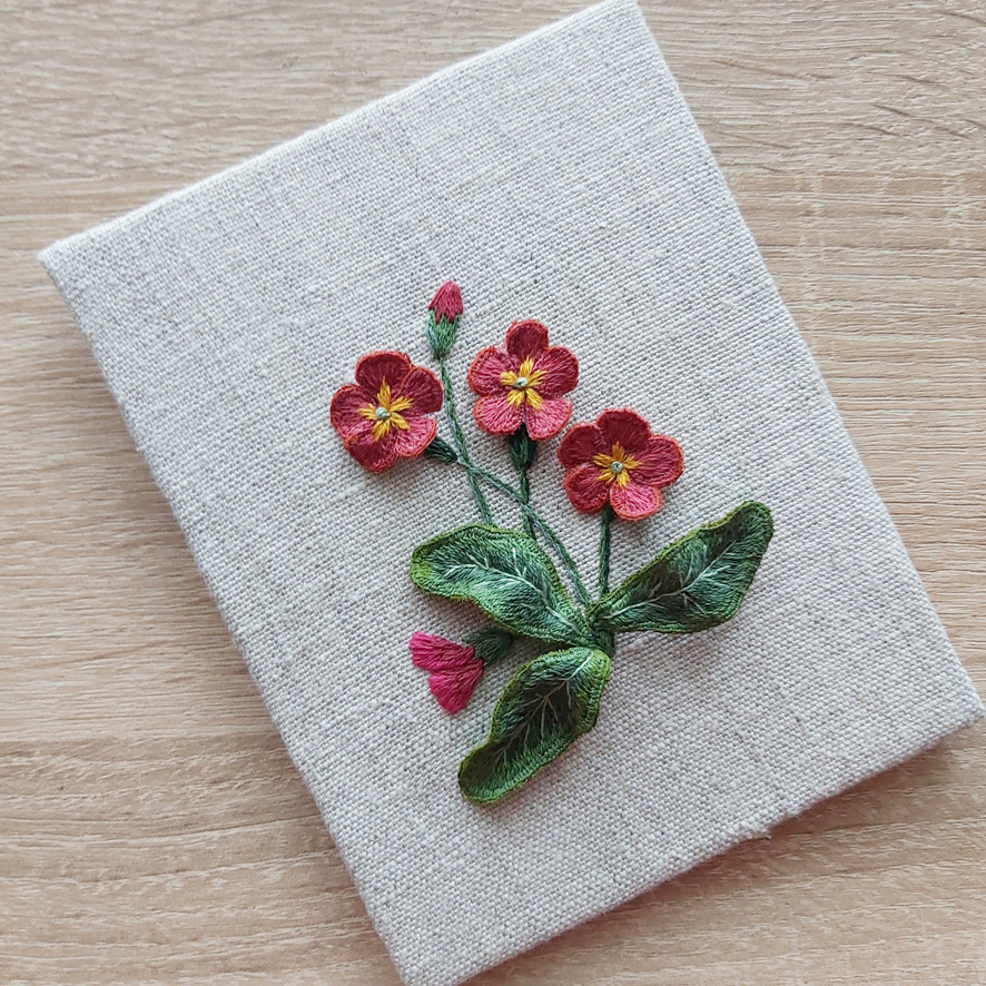 Совсем недавно я показывала вам, как вышиваются листья в объемной технике. А как же вышиваются гладью объемные цветы? Если вы внимательно прочитали предыдущую статью и вы умеете вышивать гладью, вам не составит особого труда вышить такой объемный элемент. Но повторю, переходить к объемной вышивке можно. если вы умеете вышивать плоской гладью. Итак, начнем! Покажу на примере дизайна "Примула" 1. Вышьем гладью по схеме дизайна первый слой вышивки на ткани основы и отложим вышивку в сторону. Она нам понадобится после отшива объемных элементов. 2. Заправим в пяльцы вспомогательную ткань (тонкий хлопок, синтетический шелк, а еще лучше натуральную органзу) с переведенным рисунком. 3. Прикрепим мелкими прямыми стежками проволочный каркас цветка. Концы проволоки уводим на изнанку, скручиваем, они нам больше не понадобятся. 3. Начнем вышивать гладью внутри проволочного каркаса, переходя от одного лепестка к другому. Здесь лепестки вышиваются гладью длинные и короткие стежки в 3 ряда (точнее в