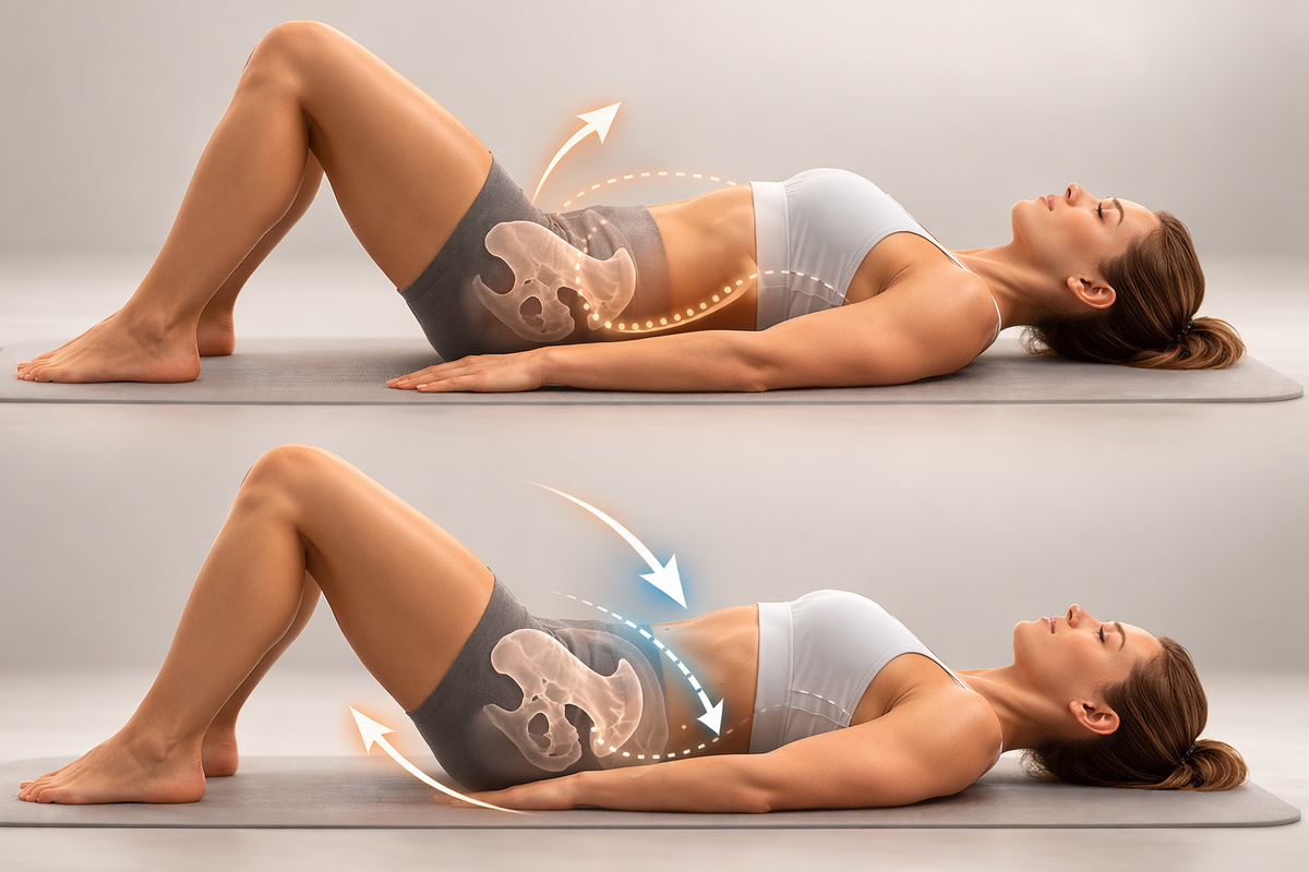 Таз — это настоящий центр управления телом. От его положения зависит осанка, здоровье поясницы и даже лёгкость походки. Когда таз теряет подвижность или стабильность, начинают появляться напряжение в спине, скованность в бёдрах и усталость при ходьбе. Хорошая новость — несколько простых движений помогают вернуть телу баланс. Это одно из лучших упражнений, чтобы мягко включить мышцы таза и разгрузить поясницу. Подходит практически всем, особенно если есть скованность в нижней части спины. Как выполнять: — Лягте на спину.
