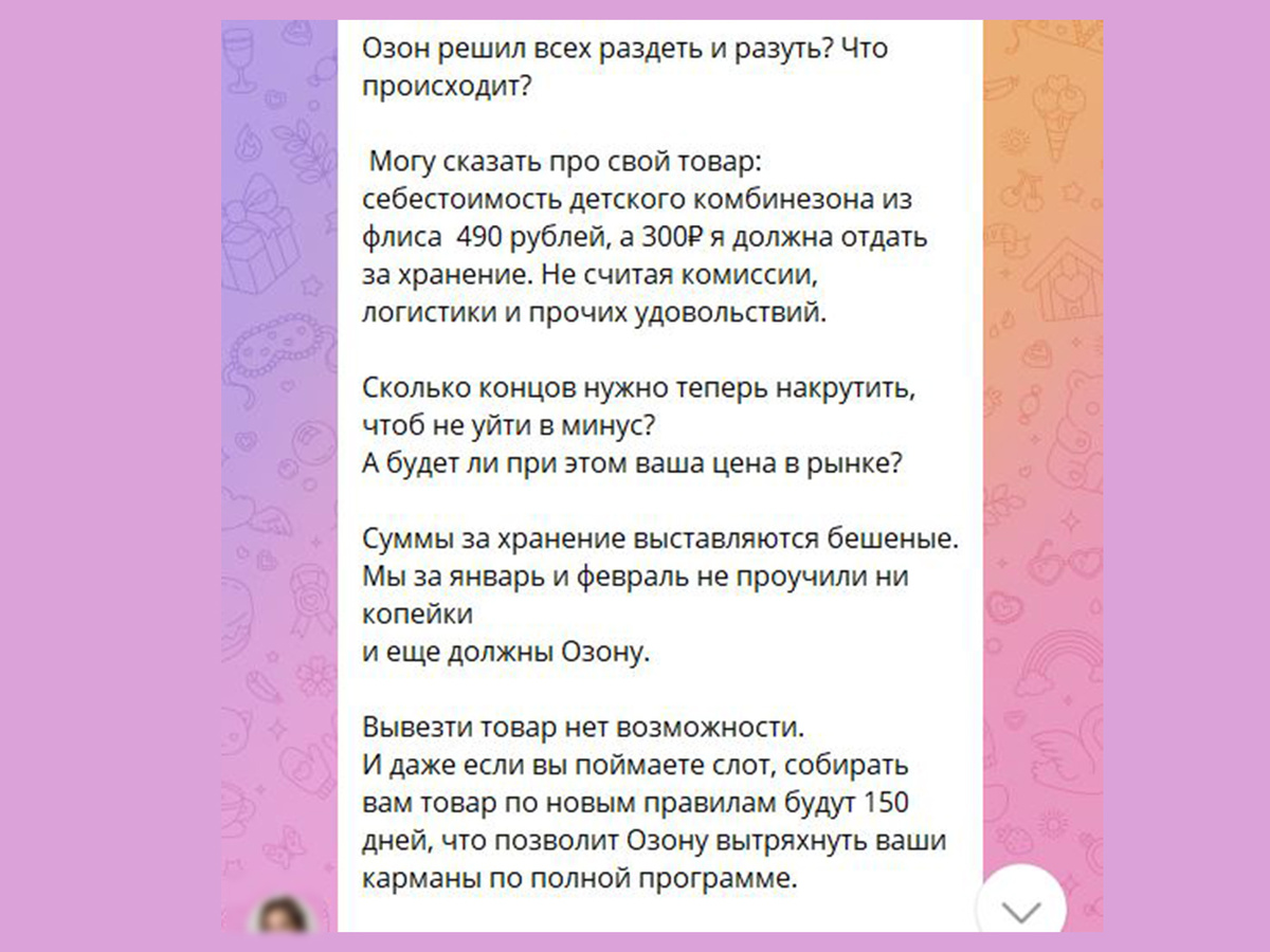 Вдумайтесь. Человек вложил свои деньги в производство товара. Разместил его на площадке. Товар продается. Но из-за конских тарифов на хранение и логистику вся выручка уходит на погашение этих самых тарифов.