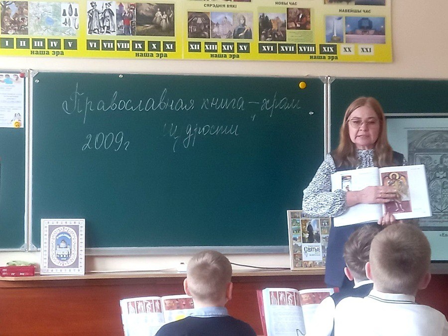 Ребята совершили увлекательное путешествие в историю: узнали, как создавались первые рукописные книги, и кто стоял у истоков книгопечатания на Руси и в Беларуси. Главной темой встречи стал разговор о том, что настоящая книга — это не просто источник информации, а настоящий «храм мудрости», который учит нас добру, милосердию и любви к ближнему. На выставке «Живое слово мудрости духовной» были представлены книги для семейного чтения, жития святых и художественные произведения православных авторов. Завершилась встреча просмотром фильма Аркадия Мамонтова «Пояс Богородицы. Послесловие», который помог ребятам лучше понять роль Божией Матери в истории и душе православного человека. Встреча прошла в теплой и дружественной атмосфере, оставив в сердцах школьников светлые впечатления.