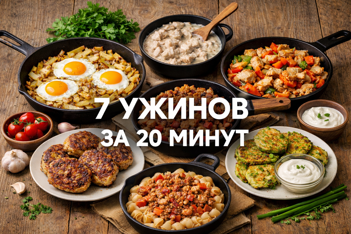 Я собрала 7 проверенных ужинов, которые можно приготовить на сковороде примерно за 20 минут. Все рецепты простые, понятные и из доступных продуктов.