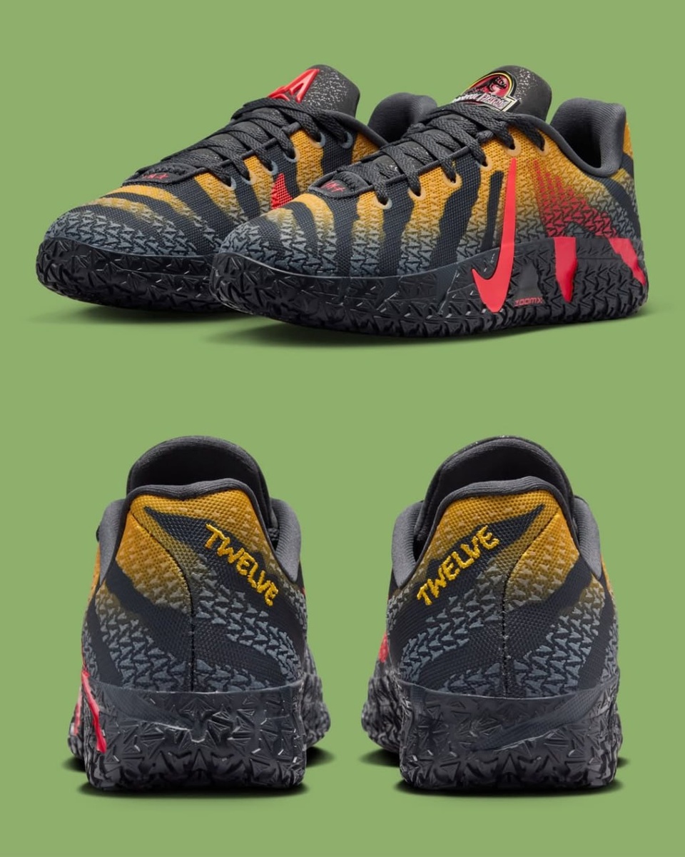 Объёмный паттерн-чешуя на именных кроссовок Джа Моранта как будто бы создавался только ради коллаба с франшизой Парк Юрского периода