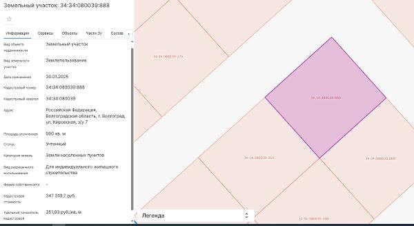 Название: Земельный участок с кадастровым номером 34:34:080039:888, площадью 990 кв.м, с местоположением: Российская Федерация