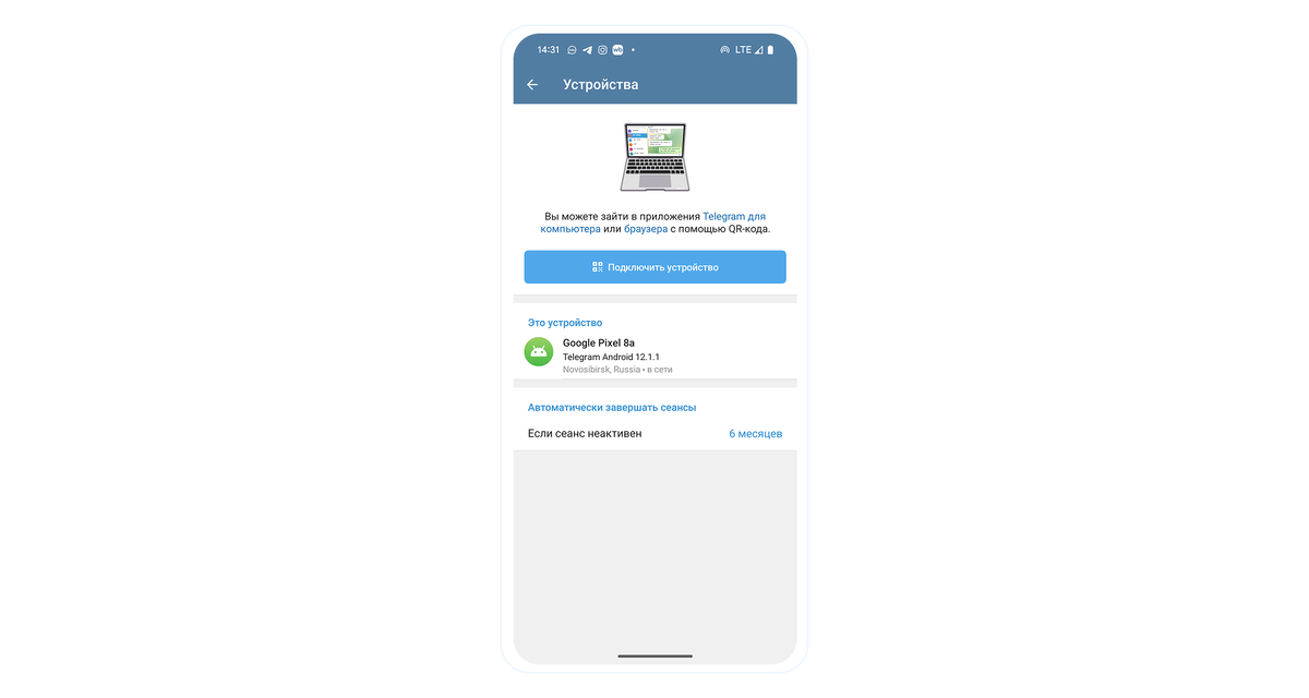 Как завершить сессию удалённо. Откройте приложение Telegram на телефоне. Перейдите в «Настройки» — «Устройства». Найдите сессию браузера в списке. Нажмите «Завершить сессию». Доступ с этого браузера будет немедленно прекращён.