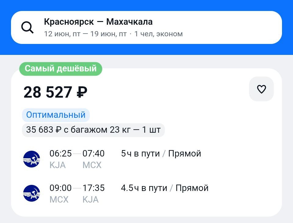 Нацперевозчик увеличивает частоту рейсов из Красноярска в Дагестан на летний период. Теперь заявлено 4 рейса в неделю: пн, ср, пт, сб.