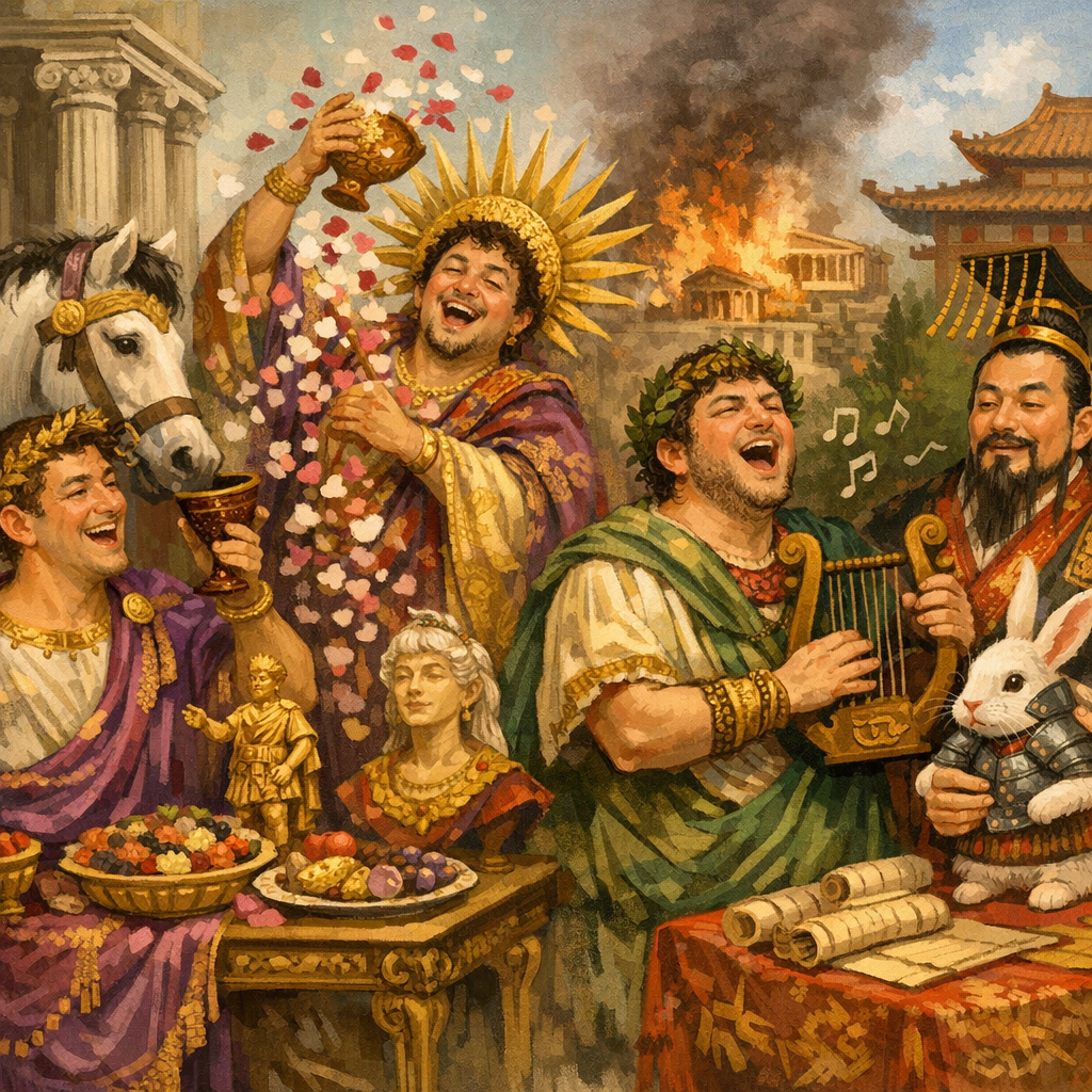 Особенно если у них в руках — армия, казна и право казнить без объяснений. Древний мир знал немало правителей, чьи поступки сегодня показались бы сценарием для тёмной комедии. Но для их современников это была реальность. Иногда — страшная. Иногда — почти абсурдная. И успел войти в историю. По словам античных авторов, он приказал солдатам атаковать… волны. Легионеры якобы собирали ракушки как «трофеи» после победы над морем. Правда это или преувеличение врагов — спорят до сих пор. Но факты подтверждают другое: Калигула устраивал пышные пиры на кораблях, тратил колоссальные суммы на роскошь и казнил сенаторов по малейшему подозрению. А ещё ходили слухи, что он хотел сделать своего любимого коня сенатором. Римлянам было не до смеха. Нерон обожал выступать на сцене. Пел, играл на кифаре, участвовал в театральных постановках. Для нас это безобидно. Для римской элиты — унизительно. Император должен был править, а не аплодисменты собирать. Во время его правления произошёл великий пожар Рима.