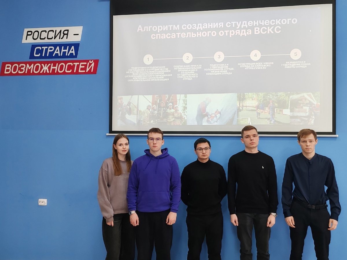 Выпуск 1: Студенческий спасательный отряд «Рубеж-46» В КГУ состоялась презентация проектных решений по созданию и развитию в университете Студенческого спасательного отряда «Рубеж-46», а также Курса прикладной безопасности «Академия защиты», в котором приняли участие заинтересованные студенты, добровольцы — члены команды проектного решения. Перед участниками встречи выступили председатель Студсовета Владимир Шабловский и ио командира студенческого спасательного отряда КГУ, руководитель проектного решения Дмитрий Мухин. Помимо концептов проектных решений студентам на встрече были представлены возможности прохождения двухнедельного обучения по программе «Первоначальная подготовка спасателей» на базе Центрального спасательного отряда Всероссийского студенческого корпуса спасателей. По результатам встречи между членами команды проектных решений были распределены функциональные обязанности, определены приоритетные направления работы и установлены сроки реализации поставленных задач.