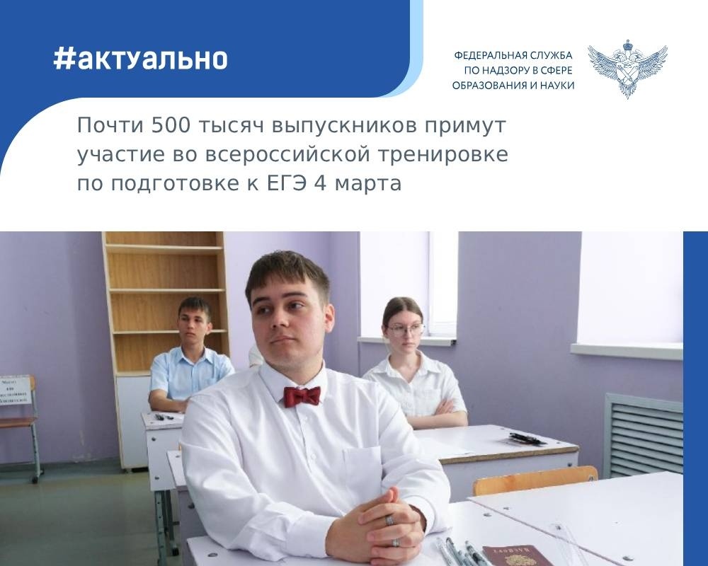 4 марта пройдет очередное всероссийское тренировочное мероприятия в рамках подготовки к проведению кампании ЕГЭ 2026 года. Тренировка пройдет с участием почти 465 тысяч выпускников, которые смогут познакомиться с процедурой экзамена и потренироваться в выполнении экзаменационных работ. Тренировка пройдет по всем предметам, сдаваемым в формате ЕГЭ.