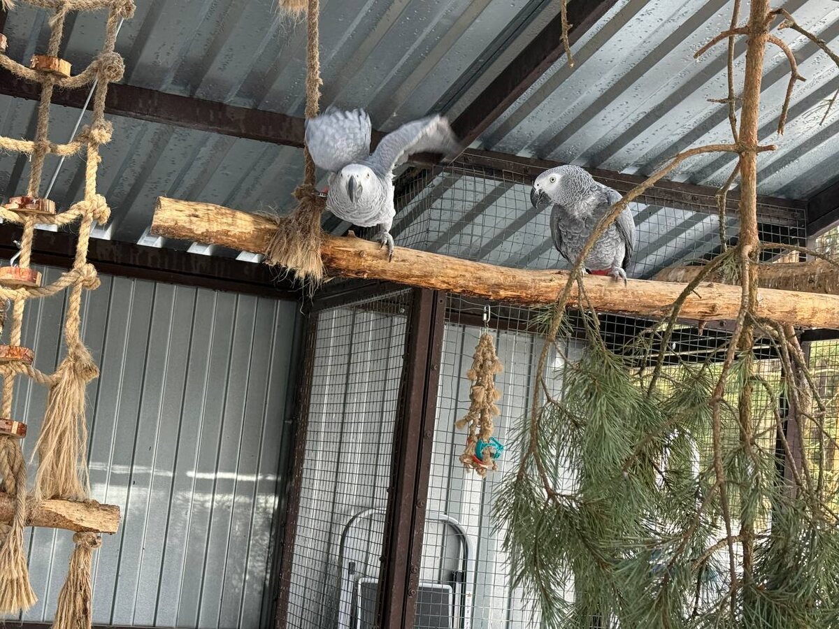 По моим наблюдениям раньше жаки с первыми наступлениями холодов перебирались в зимник и более оттуда не выбирались до самой весны) В этом же сезоне что-то изменилось, я видела их обоих на прогулках и довольно часто. В отличии от Евы, у Бурана не очень хорошее оперение, он ощипывает часть шеи и начало груди из-за проблем с сосудами, но это никак не мешало ему выходить на прогулки даже в минусовую температуру. В этом году зима была действительно снежная и довольно холодная 🤔