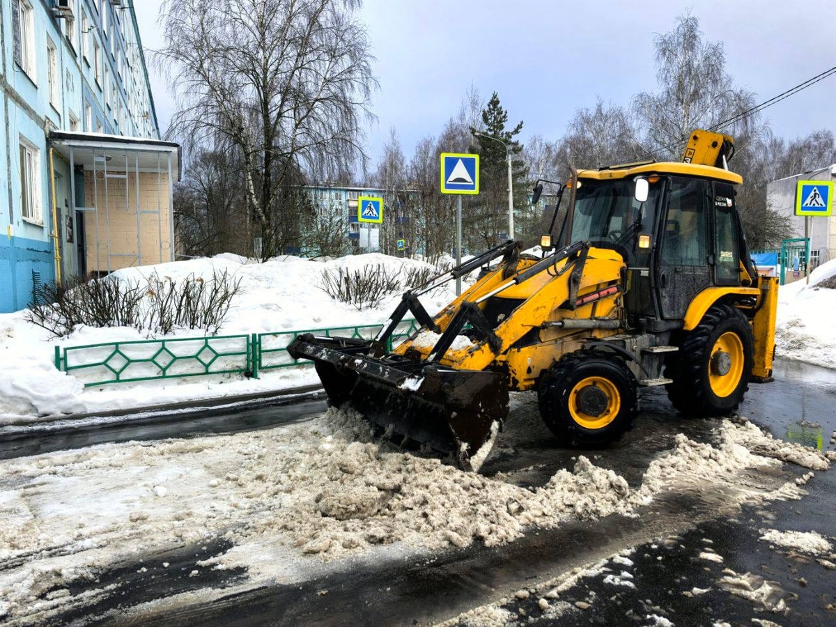 Сегодня в посёлке Лунёво от снега расчищают парковки и придомовые территории. Снег вывозят на специализированные площадки, проблемные участки обрабатывают противогололёдными материалами.