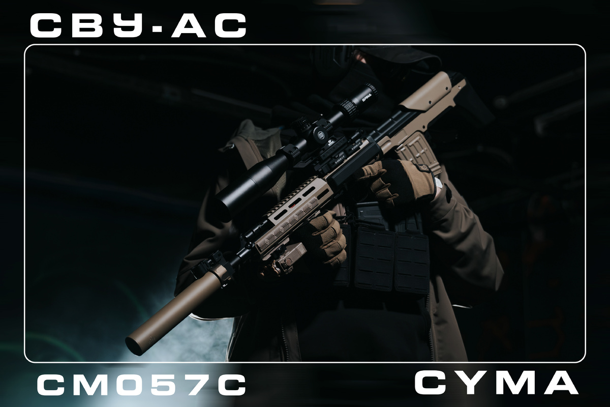 Снайперская тема в страйкболе — это всегда особая романтика. Маскировка, выжидание, один точный выстрел... Но давайте начистоту: классические снайперские винтовки часто напоминают весла, с которыми невозможно развернуться в лесу, не говоря уже о CQB-полигонах. Поэтому сегодня мы поговорим о нестандартном, но безумно интересном решении — СВУ-АС от Cyma (модель CM057C). Это компактная марксманская винтовка на базе легендарной СВД, которая ломает стереотипы о неповоротливых снайперах. Уже звучит интересно? Добавьте сюда современное цевье M-LOK, шикарный цвет Tan и надежную «цимовскую» начинку — и получите один из самых харизматичных стволов на полигоне. Давайте разберем ее по косточкам. Первое, что бросается в глаза — характерный силуэт СВУ-АС с компоновкой булл-пап (когда магазин и УСМ находятся позади рукоятки управления огнем). Для страйкбола это не просто дань эстетике, а чистый функционал: Компактность. Общая длина винтовки позволяет комфортно работать в густом лесу и даже заходить в
