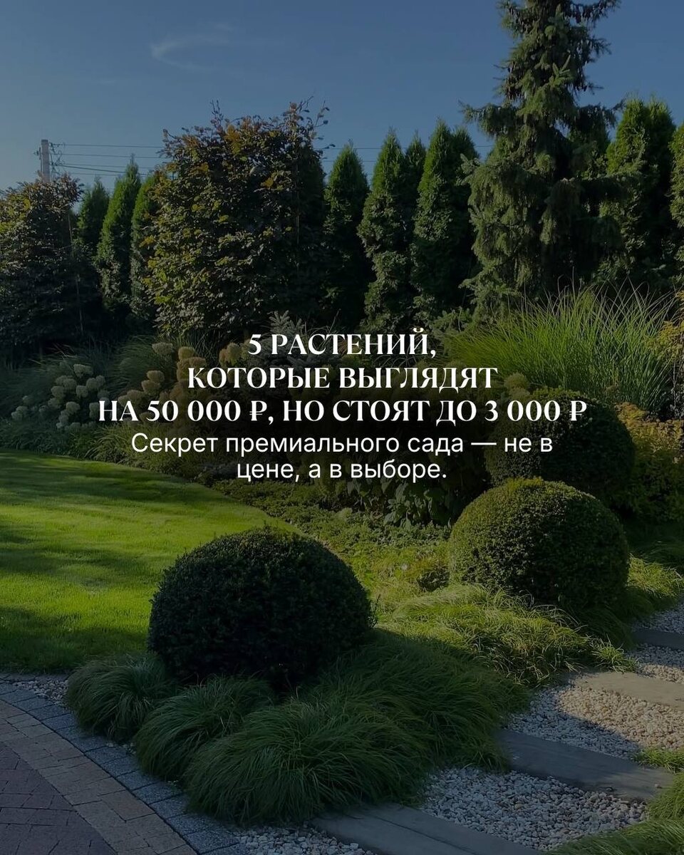 Это про грамотный подбор 🌿 В этой подборке мы собрали бюджетные растения, которые выглядят статусно, дорого и эффектно — и при этом не требуют космических вложений. Правильная композиция, фактуры, объём — и ваш участок уже смотрится как с обложки. Секрет не в цене. Секрет — в профессиональном подходе. Хотите ещё подборку альтернативных, доступных и при этом «дорогих» на вид растений? Напишите в комментариях «Часть 2» — и мы подготовим продолжение 💬✨