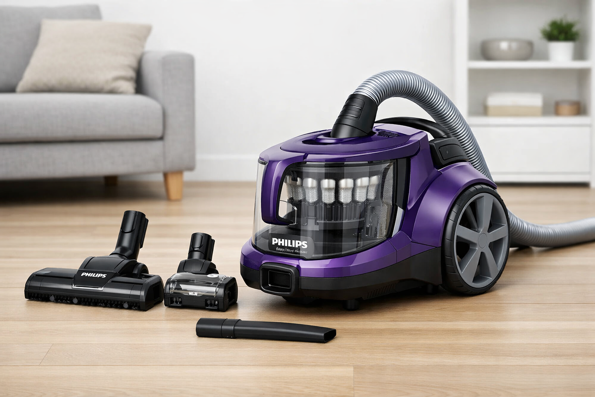 - **Большие квартиры/дома** – длинный шнур, большой контейнер