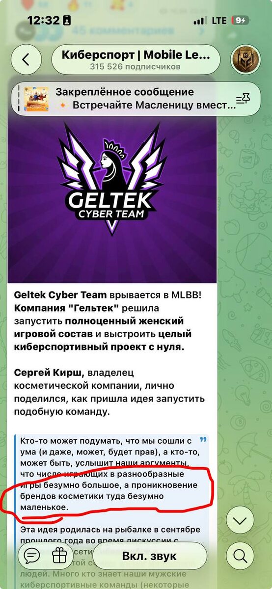 Реально интересное начинание, создание киберспортивной женской команды, произошло у одного из бьюти брендов в рф