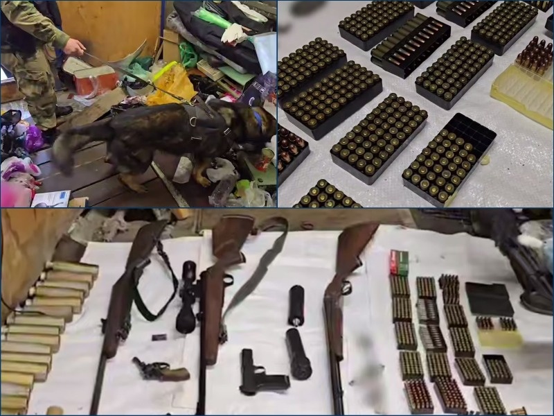 В Азове сотрудники Управления по контролю за оборотом наркотиков ГУ МВД России по Ростовской области совместно с уголовным розыском и при поддержке Росгвардии пресекли деятельность двух местных жителей — 67-летнего мужчины и его 45-летнего сына. Оперативная разработка началась после информации о возможном сбыте наркотиков младшим из фигурантов. Во время обыска дома изъяли более 140 граммов гашиша и марихуаны, предназначенных для продажи. Возбуждено уголовное дело по ч. 3 ст. 30, ч. 4 ст. 228.1 УК РФ. Позже в гараже, принадлежащем отцу, обнаружили гранату Ф-1, три бризантных заряда, более 1800 патронов, магазины, предмет, схожий с автоматом Калашникова, карабин с оптикой, охотничьи ружья, пистолеты и револьвер. По версии следствия, к незаконному хранению оружия и взрывчатки причастен старший из подозреваемых, однако сын знал о схроне и имел к нему доступ. Возбуждено дело по ч. 3 ст. 222.1 УК РФ. Назначены экспертизы. Подозреваемым избрана мера пресечения в виде заключения под стражу. Гр