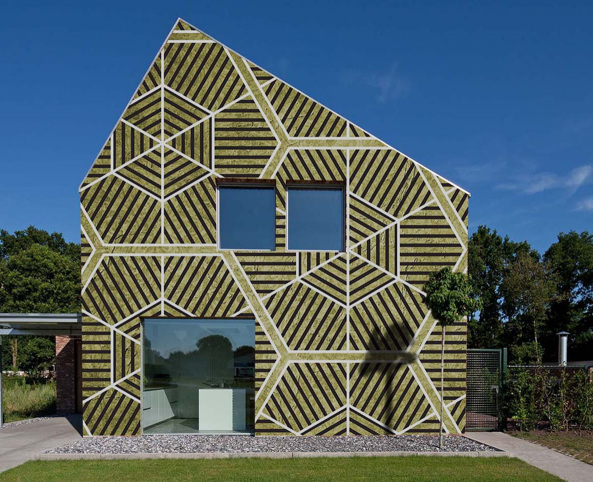 Обои на основе стекловолокна долгие годы применяли в общественных пространствах. И вот дизайнеры взяли «неубиваемую» основу и использовали в неожиданном месте — на наружных стенах дома.