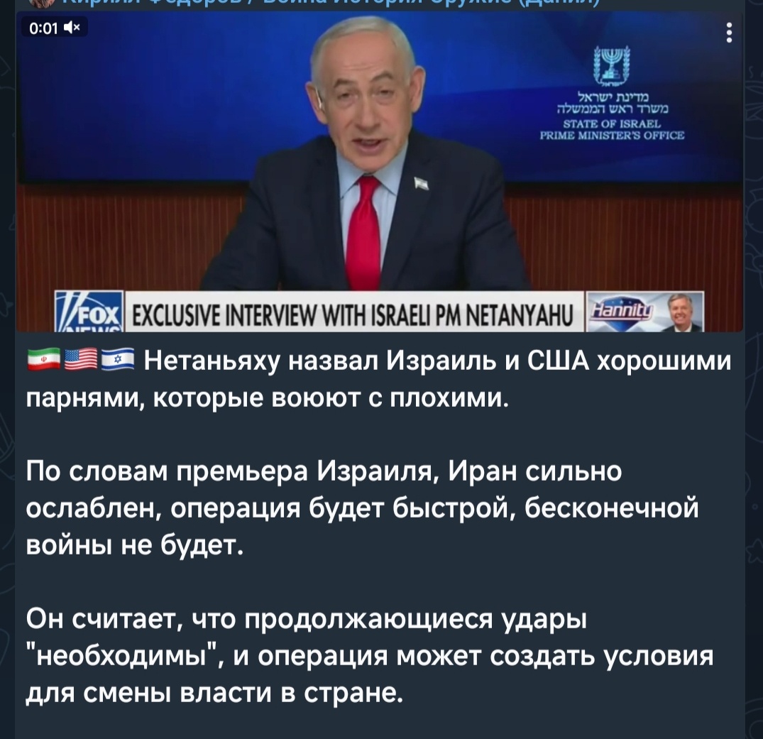 Нетаньяху заявил, что военная операция долго длиться не будет. Она будет быстрой, по его словам. Хотя Трамп анонсировал бомбежки на протяжении месяца, возможно до двух.