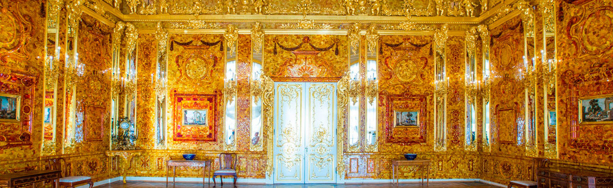 Янтарь — это ископаемая смола, которой десятки миллионов лет. В янтарных панно комнаты можно разглядеть доисторические включения. Но есть и технологический нюанс: чтобы создать плоские панели, мастерам приходилось прогревать и спрессовывать янтарь под прессом, обесцвечивая его, а затем резать на куски. Поэтому натуральный цвет комнаты — не просто медово-желтый, а результат сложной игры полупрозрачных пластин, под которые часто подкладывали золотую или серебряную фольгу для сияния .