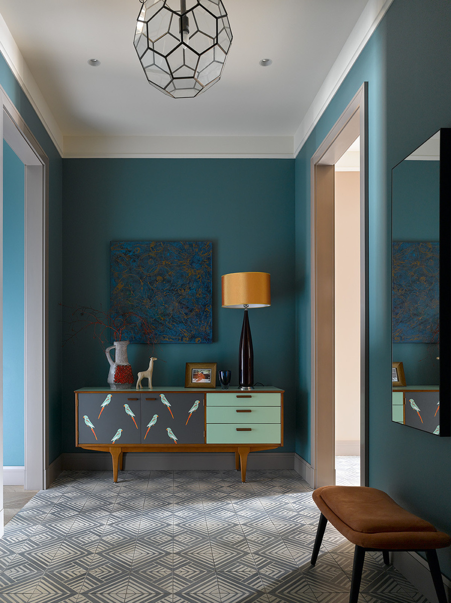 На фото: пример окрашенных в массе обоев насыщенного цвета. Наклеили — и готово, не нужно красить прихожую