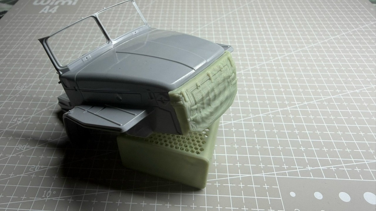 Московская ЪУЪ показала свой выпущенный на 3D-принтере утеплительный чехол на радиатор модели Урал-4320 в масштабе 1/35.